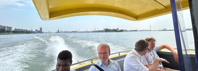 Daarna gingen we in gesprek over de toekomst van de Rotterdamse haven met het Havenbedrijf en Deltalinqs. Vanuit de ChristenUnie sloot Pieter Grinwis zich ook aan, waardoor alle drie bestuurslagen aan tafel vertegenwoordigd waren. De maatschappelijke opgaven waarmee de Rotterdamse haven worstelt, zoals stikstof, energietransitie en woningbouw, manifesteren zich immers ook op landelijk, provinciaal en lokaal niveau. Iedereen aan tafel was het erover eens dat we de handen ineen moeten slaan om de 'vijftig kilometer industrieel genot' in Rotterdam te behouden én toekomstbestendig te maken. Dat kan niet met zwabberbeleid; dat vereist scherpe keuzes en een langetermijnvisie, aldus Pieter Grinwis.